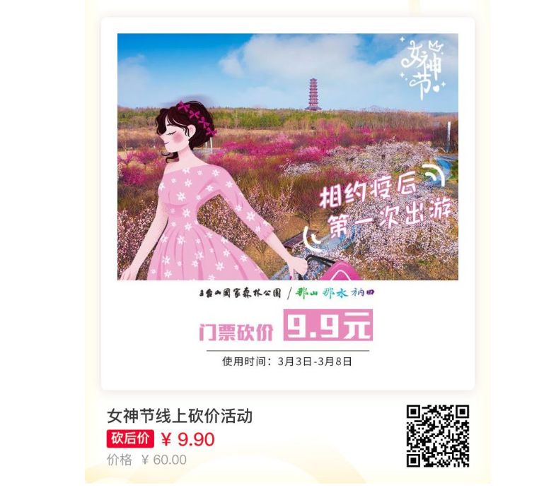 春风和煦的三月最适合外出赏春游玩不要辜负大自然的美美心意放风筝、野餐、或是做个“花痴”……元气满满的“趣”踏青吧!女神节快乐小山奉上终极福利~♥砍价活动规则1 票价最低可砍至9.9元,如在规定时间内未砍价完成,自动失效。2 砍价活动自即日起至3月8日截止,每天限…